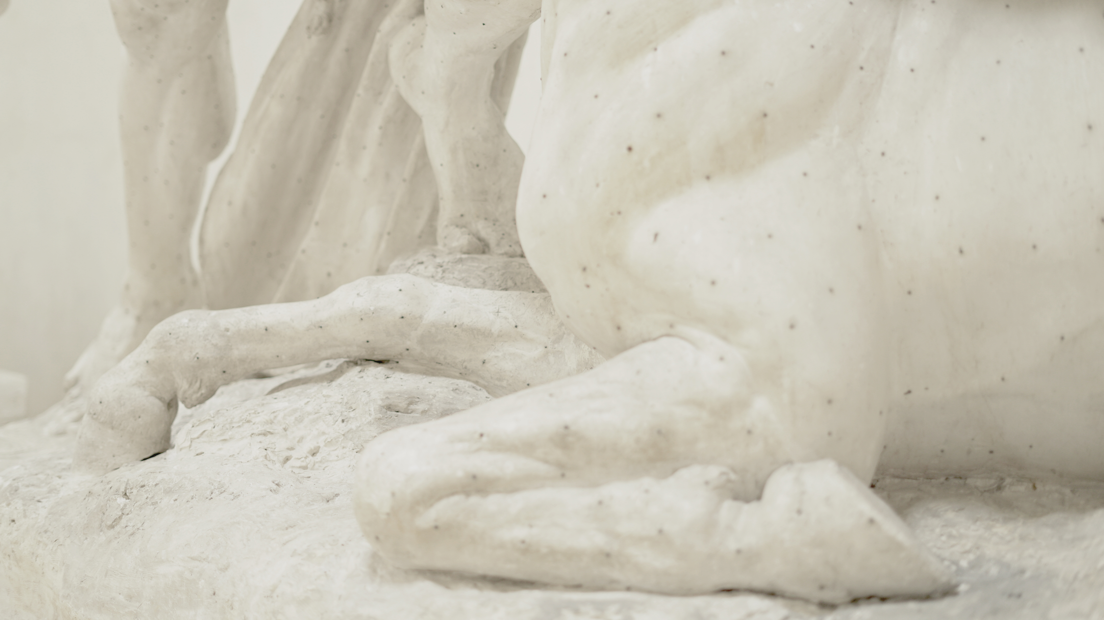 In Eclissi (Eclipse), two petrified eyes look in the direction of the viewer entering the exhibition space. They are eyes that never blink, like guards, constantly alert. The artist has filmed Medusa’s head with a red optical filter, red filterd are used in some night-vision devices due filtering capacity and the way it helps the viewer adapt to sudden changes in brightness from dark to blinding light and vice versa. Eclipse shows details of Antonio Canova’s 1798 terracot- ta entitled Testa di Medusa (Medusa’s Head) displayed in the Museo Gypsotheca di Canova in Possagno,Treviso.